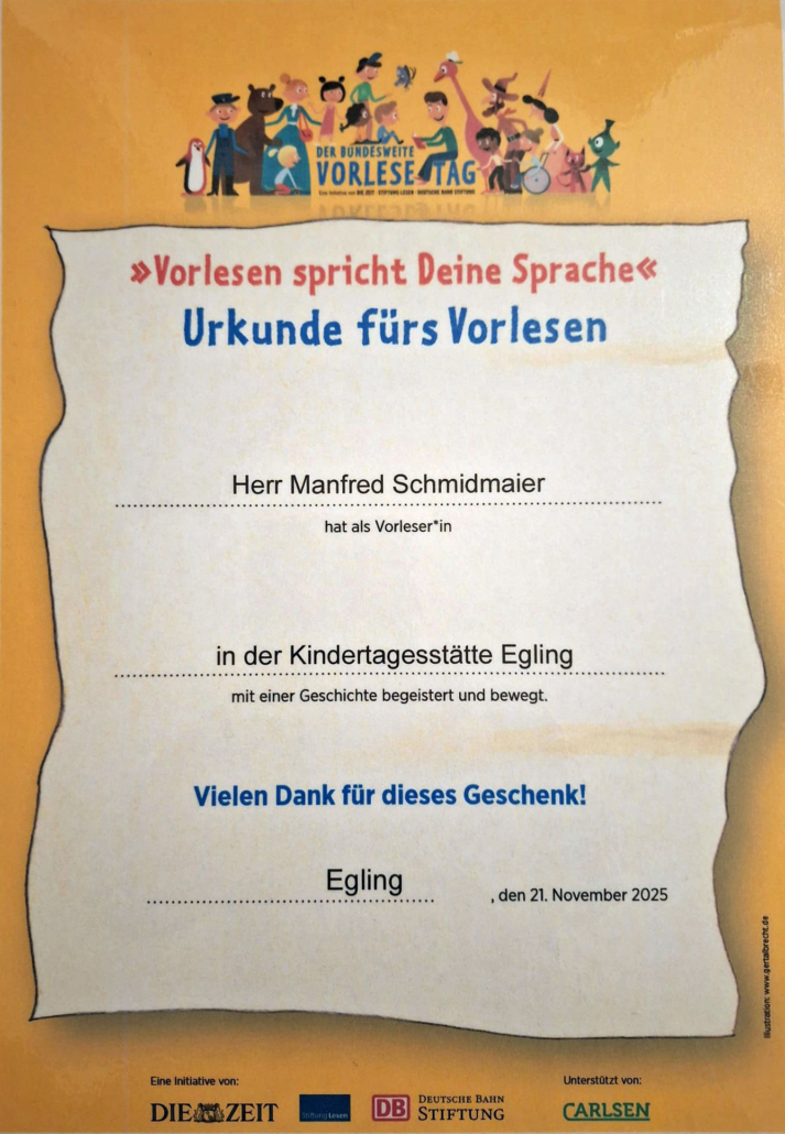 Am bundesweiten Vorlesetag haben wir mal die Kochlöffel gegen ein Buch getauscht und in der Kita Egling vorgelesen. Die leuchtenden Augen, das gespannte Zuhören und die Begeisterung der Kinder – das war einfach großartig!